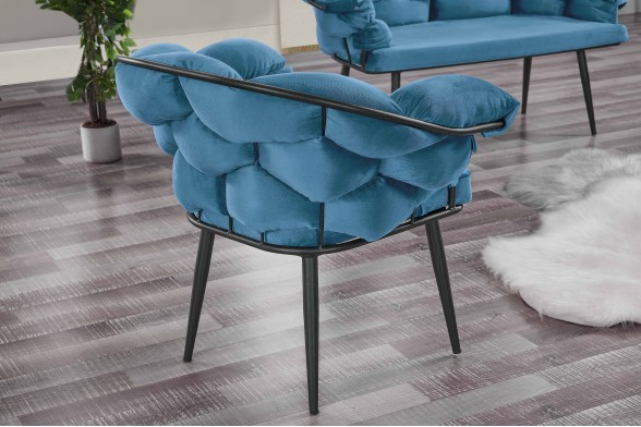 Umka Siyah Boyalı - Mavi Döşeme | Balon Çay Seti | Balkon Koltuk | Berjer | Balkon Çay Seti