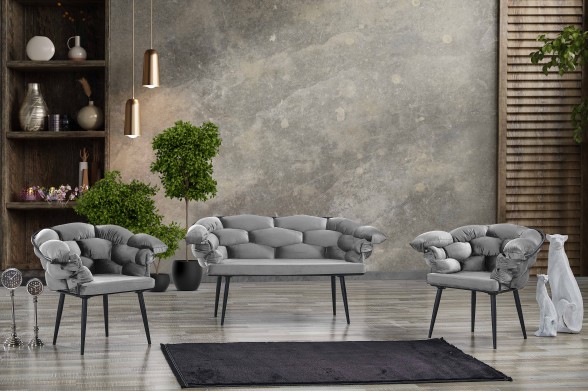 - Ürün Görselde Göründüğü Gibi 1 Adet İkili 2 Adet Tekli Oturma Grubundan Oluşmaktadır.