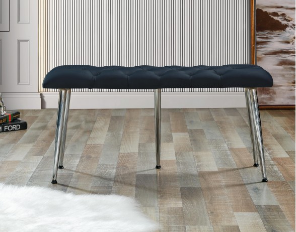 Krom Metal Siyah Oturaklı Sivriltme Ayaklı Babyface Puf & Bench & Oturak KROM-SİVRİLTME-AYAKLI-